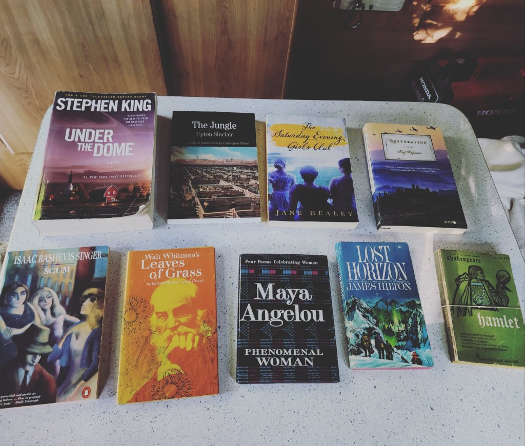 There’s so many things about used books that I love. The price is normally right, especially if it’s at a 50% (or greater) markdown. This is always better if I beat the fuck out of my book, as pictured below. This was the Stephen King book I thank God found in my bookstore since I forgot to take one with me, and I surely couldn’t break tradition by not reading an SK book this year. My copy of Under the Dome surely took a beating from the countless times I carried it over rivers, one of the dogs knocking it out of my chair, one of the dogs was wet and jumped on me while reading, I was wet and picked the book back up, etc. I’m probably as messy as a child, so I’ve always gotten upset when I mess up a book I paid full price for, especially a $30 hardcover.
